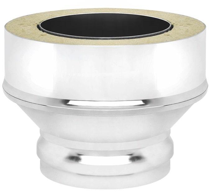 Переход для труб дымохода на сэндвич Везувий устанавливается при переходе с неутепленной системы на утепленную (с одноконтурного дымохода на двухконтурный). Элемент дымохода "Переход на сэндвич" изготовлен из нержавеющей стали 0,8 мм.