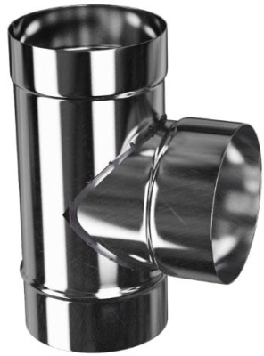 Тройник 90 гр. 115 мм, 1 мм Инжкомцентр ВВД. Предназначен для соединения горизонтального и вертикального участков дымохода в одноконтурном исполнении или воздуховода. Используется в схемах сборки дымоходов при необходимости снятия и переноса весовой нагрузки от дымохода с теплогенерирующего аппарата, либо на дополнительную фундаментную опору, либо на систему кронштейнового крепления к стене, при сборке сложных дымоходов от нескольких теплогенерирующихся аппаратов, для сборки сэндвичных элементов дымохода.