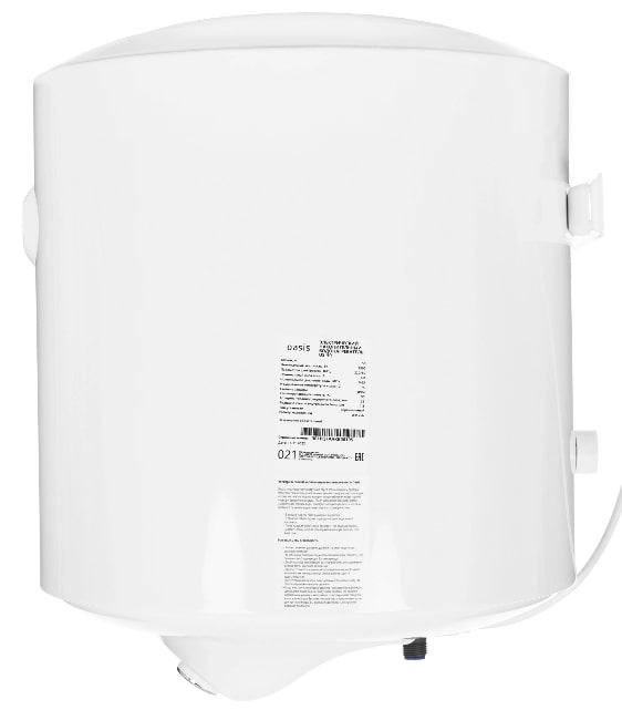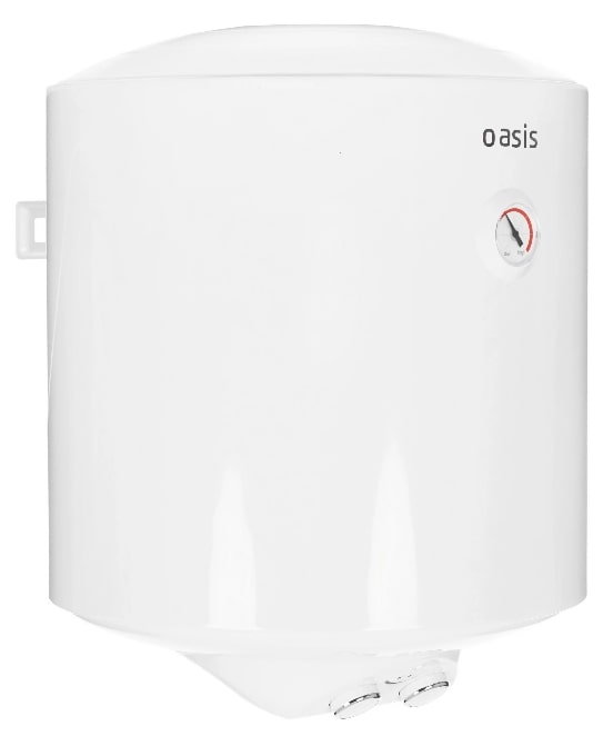 Водонагреватель электрический Oasis US-50 Водонагреватель электрический OASIS US-50 – накопительный прибор с баком на 50 л и простым настенным монтажом. Эмаль на внутренних стенках защищает от появления ржавчины, магниевый анод рядом с ТЭНом нейтрализует накипь. Установленный в нижней части корпуса предохранительный клапан исключает появление протечек и стравливает небольшие излишки давления.