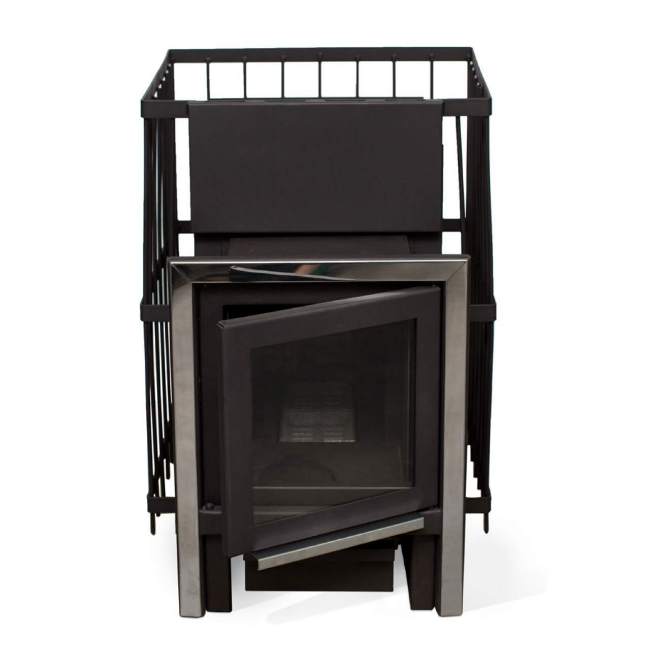 Печь для бани ПБМ ПС Мета-Бел с сетчатым кожухом прямоугольной формы. Сетчатый кожух – съемный, что удобно при установке банной печи. Толщина металла стенки корпуса в наиболее термонагруженных местах достигает 9 мм.