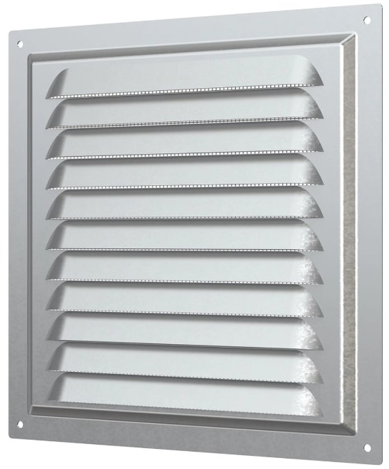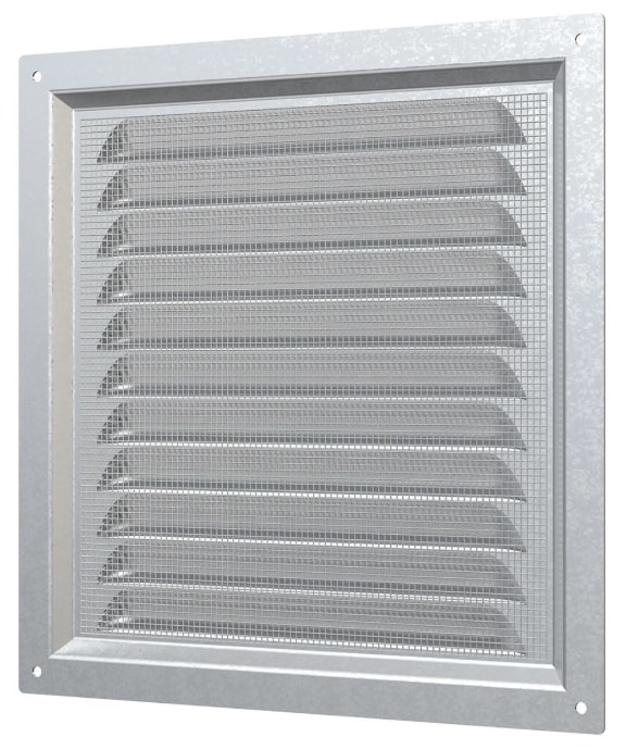 Решетка вентиляционная металлическая с оцинкованным покрытием 200х200 мм ERA. Имеет наклонные жалюзи и антимоскитную сетку для защиты от насекомых. Сетка устанавливается в специальном углублении.