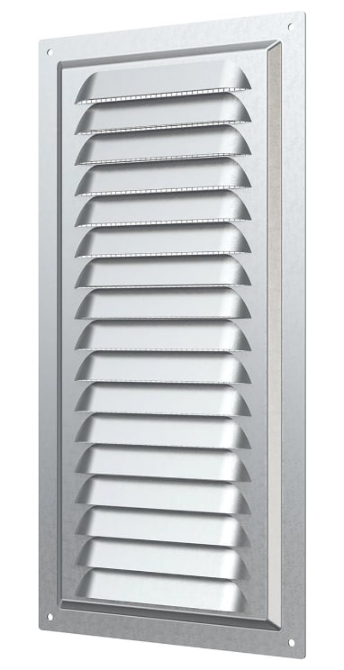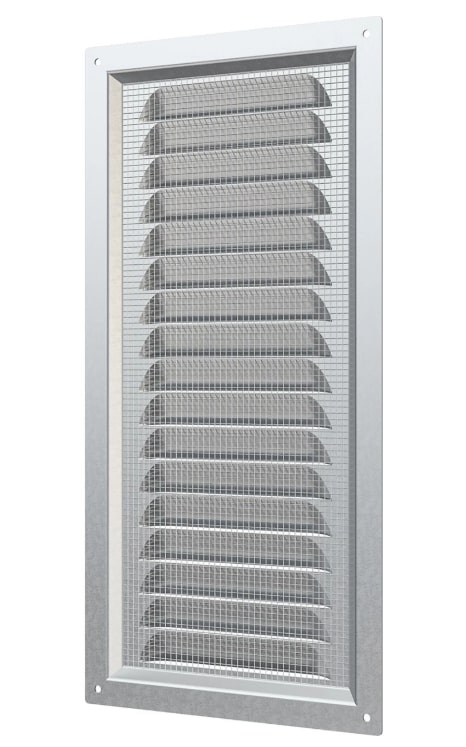 Решетка вентиляционная металлическая с оцинкованным покрытием 150х300 мм ERA. Имеет наклонные жалюзи и антимоскитную сетку для защиты от насекомых. Сетка устанавливается в специальном углублении.