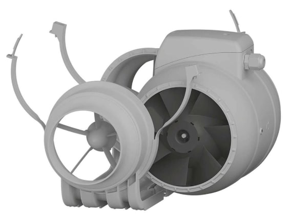 Вентилятор канальный TYPHOON d100 мм двухскоростной с таймером ERA PRO предназначен для приточно-вытяжных систем вентиляции промышленных, общественных и жилых зданий. Съемный центральный блок с двигателем, крыльчаткой и клеммной коробкой крепится к патрубкам хомутами. Это существенно упрощает обслуживание. Вентиляторы имеют две скорости, которые переключаются путем подключения проводов к колодкам, расположенным в клеммной коробке. Возможна установка кнопки (в комплекте). Асимметричная форма клеммной коробки облегчает подключение сетевого провода. Двухскоростной однофазный двигатель на шарикоподшипниках с длительным сроком службы. Имеет встроенную тепловую защиту с автоматическим перезапуском. Вентиляторы подходят для горизонтального и вертикального монтажа. Крепление к месту монтажа осуществляется при помощи саморезов. Благодаря опции АТ вентилятор может работать с отсрочкой выключения по таймеру от 0 до 30 минут (при подключении по трехпроводной схеме).