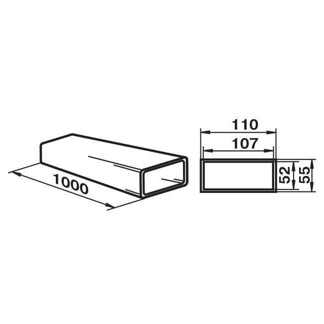 - Сечение: 110х55 мм (внешнее), 107х52 (внутреннее);