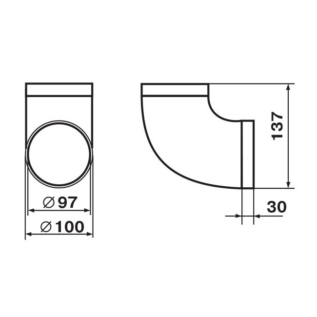 Колено круглое d100 90 градусов СЕМЬ ВЕТРОВ 121 для приточной или вытяжной вентиляции различных помещений. Для соединения круглых воздуховодов одного диаметра под углом 90°. Изготавливается из пластика белого цвета. Прямое соединение с каналами.