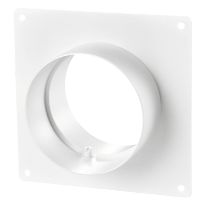 Соединитель для круглых воздуховодов с настенной пластиной d150 Вентспредназначен для соединения каналов одного диаметра и декорирование монтажных отверстий.