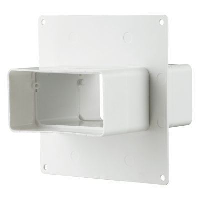 Соединитель плоских воздуховодов 110x55 с настенной пластиной Вентспредназначен для соединения плоских каналов одного сечения и декорирования монтажных отверстий и присоединения к стене.