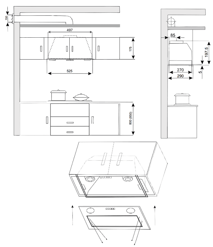 Вытяжка кухонная EXITEQ EX-1446 inox это компактная модель с высокой производительностью. Конструкция полно встраиваемая, что позволяет скрыть корпус вытяжки в навесном шкафчике оставив только панель управления и воздуховод. Вытяжка EX-1446 рассчитана на работу в режиме отвода и рециркуляции. Данная вытяжка работает в трех скоростных режимах. В модель установлены все необходимые функции для комфортной эксплуатации. Работа мотора регулируется 3-мя скоростями через кнопки на панели. Данная вытяжка является хорошим решением для любой кухни: высокая производительность, универсальный дизайн подходящий для любой кухни, удобное управление.