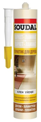 Герметик акриловый для паркета 280 мл Клен Soudal. Герметик на основе водной дисперсии акриловых смол разных цветов, соответствующих самым популярным видам паркета.