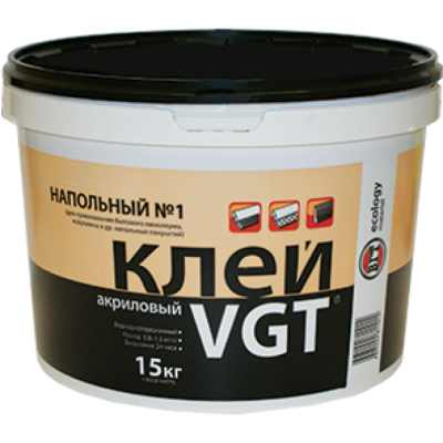 Клей для напольных покрытий №1 VGT ЭКОНОМ, 15 кг предназначен для приклеивания бытового линолеума и ковролина.