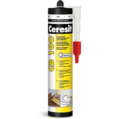 Клей монтажный CB 100, белый 400 гр Ceresit профессиональный акриловый водно-дисперсионный клей с высокой начальной фиксирующей способностью. Предназначен для склеивания строительных материалов: кирпич, керамика, бетон, камень, полистирол, многие виды пластмасс.