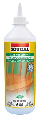 Клей для дерева быстросохнущий Soudal 64А, 250 мл - белый быстросохнущий виниловый клей (ПВА) с высокой силой соединения предназначен для использования внутри помещений. Отвердевает через 20 минут. Класс водостойкости - D2 (EN204).