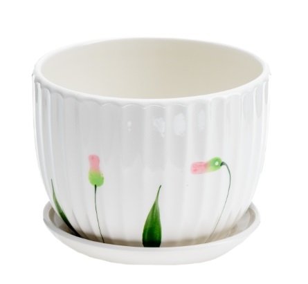 Горшок для цветов керамический с подставкой 14x11.2 см, TX63002-3 используется для выращивания комнатных растений.