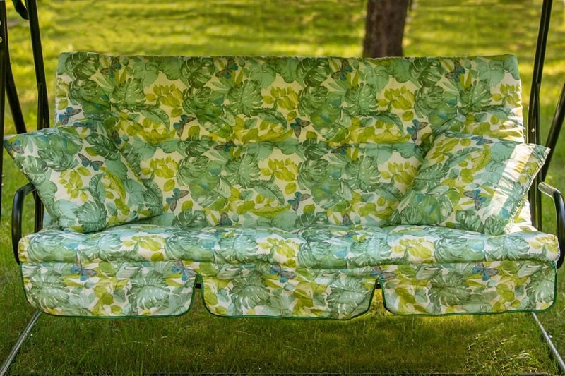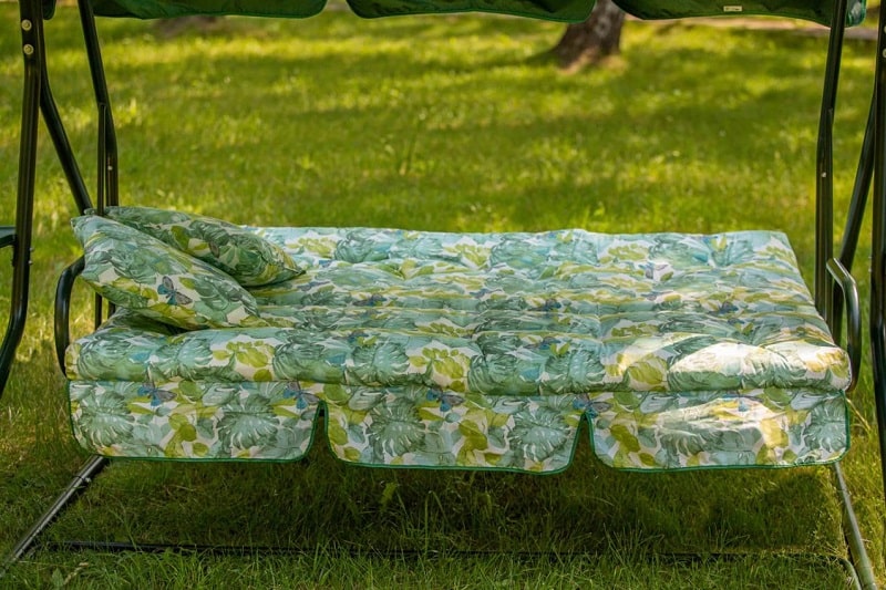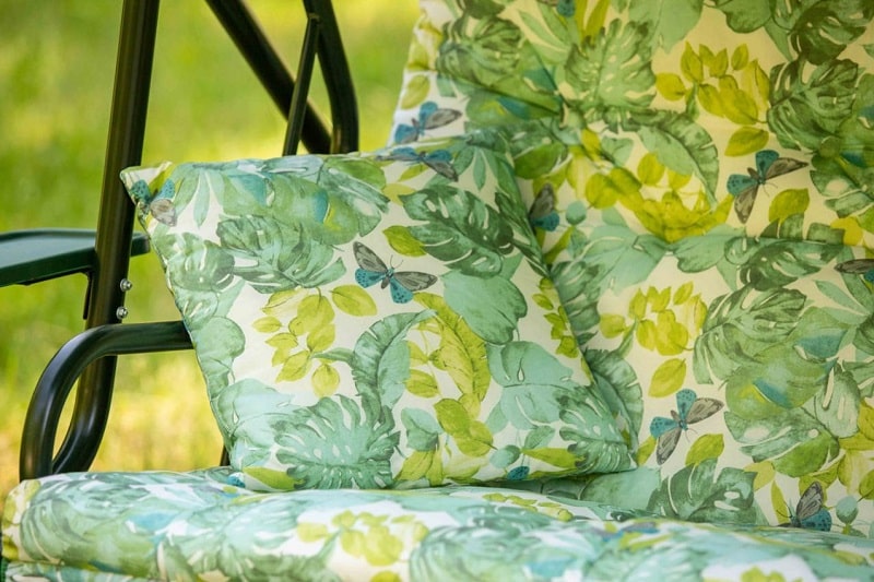 Мягкий элемент: ткань 45% п/э – 55% хлопок, плотность 108-111г/м2, наполнитель мягкого элемента 50мм аэрофом + синтепон, основание спанбел. Увеличенная высота спинки. Декор мягкого элемента тафтингом. Наполнитель подушек синтепон. Подушки – 2шт.