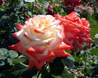 Розы саженцы чайно-гибридная Императрица Раскрывающиеся бутоны Imperatrice Farah необычайно элегантные. Края лепестков бледно-малиновые, лепестки закручены в классический бутон, так что наружу отгибаются только окрашенные кончики. Вначале они выглядят в основном малиновыми, но по мере распускания цветки становятся скорее белыми. Контраст между белыми лепестками и их малиновыми краями смотрится красиво на всех стадиях роспуска цветка. Цветки крупные, с длинными лепестками, появляются обычно по одному, изредка в кистях до 5 шт, на длинных побегах, превосходно подходят для срезки. Листва крупная, блестящая, устойчива к черной пятнистости, куст сильнорослый, прямостоячий.