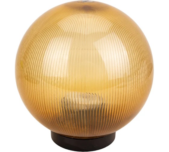 Светильник НТУ 02-60-203 УХЛ1.1 призма золотистая Свет выполнен в форме шара. Отлично дополняет окружающее пространство, а кроме этого создает освещение практически на все 360°. Основание изготовлено из поликарбоната, а рассеиватель ― из полиметилакрилата. Характеристики материалов показывают отличную устойчивость к механическим повреждениям, а также воздействию температуры и солнечного света. Рассеиватель прозрачный и имеет легкий золотистый окрас, благодаря этому потери от источника свечения минимальны, а призматическая насечка создаст оригинальное свечение вокруг. Классический черный цвет основания легко впишется в любую обстановку. Изделие имеет универсальный способ монтажа: его можно смонтировать напрямую на поверхность, а также с помощью дополнительно приобретенной стойки или настенного крепежа. В качестве источника свечения допустимо использовать лампы накаливания мощностью до 60 Вт и патроном Е27, энергосберегающие же лампы ограничены только размером.