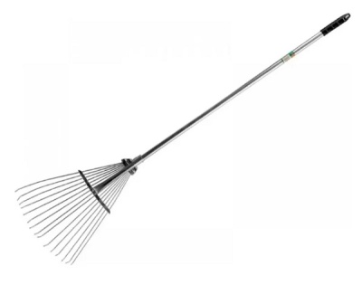 Грабли веерные (складные) металлические. Прочные веерные грабли с лёгким алюминиевым черенком, с металлическим зажимом-фиксатором, с пластиковой ручкой для удобной навески. Легко раскладываются и складываются, удобные в использовании.