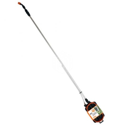 Длина трубки регулируется от 1.26 до 2.2 метров, что позволяет обрабатывать не только небольшие растения, а также кустарники и деревья высотой до 5 метров. Распыл происходит нажатием на клавишу ручки брандспойта, оснащенную механизмом фиксации в рабочем положении. Поворотная форсунка позволяет регулировать факел распыла от струи до тумана.