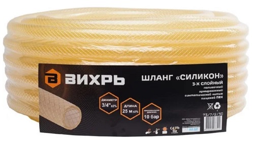 Шланг поливочный Силикон трёхслойный армированный 3/4 дюймов, 25м (прозрачный) Вихрь обеспечит полив растений в саду, огороде или на приусадебном участке в системах с малым давлением воды.