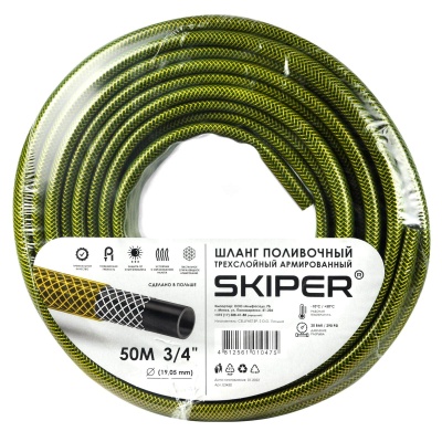 Шланг поливочный 3-х слойный 3/4" (19 мм) 50м SKIPER
