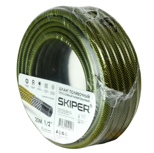 Шланг поливочный 3-х слойный 1/2" 20м, SKIPER E1220 - армированный трехслойный поливочный шланг SKIPER применяется для полива растений на садово-огородных участках.