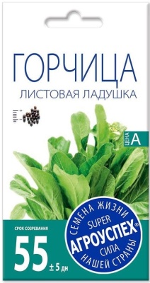 Горчица Ладушка листовая (1г). Высокая устойчивость к стеблеванию. Раннеспелый, период от всходов до полной хозяйственной годности 58-60 дней. Розетка компактная, вертикальная диаметром 23-29 см. Лист крупный, цельный, удлиненно-яйцевидный, зеленый, плотный, сочный, хрустящий. Ткань пластинки листа слабопузырчатая. Вкус специфический - слабоострый. Рекомендуется для выращивания в защищенном грунте в зимнее время и в весеннее время в качестве зеленной культуры. Товарная урожайность 2,8- 3,3 кг/кв.м. Условия выращивания. Посев производится на постоянное место. Культура мало требовательна к плодородию почвы. Можно выращивать в зимний период на подоконнике.