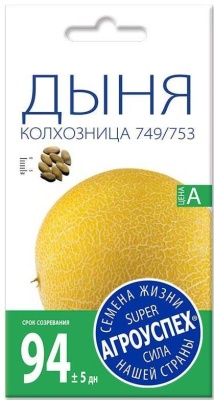 Дыня Колхозница 749/753 (1г). Нежная, вкусная. Среднеспелый (77-110 дней), длинноплетистый сорт. Плод шаровидный, гладкий, с неполной крупноячеистой сеткой, без рисунка, темно-зеленый или желто-оранжевый, массой 0,7-1,3 кг. Мякоть плотная, белая, вязкая, сладкая. Сорт устойчив к растрескиванию плодов, высокотранспортабельный, невыносит длительного хранения. Ценный по сахаристости. Устойчив к неблагоприятным условиям. Условия выращивания: Посев в конце апреля - начале мая, когда почва прогреется до +15°С, на глубину 3-5 см. Схема посадки 140x50 см. Возможно выращивание и рассадным способом. Рассаду высаживают в грунт после угрозы возвратных заморозков в возрасте 3-4 настоящих листьев. По мере роста растение формируют в один стебель, производя удаление боковых побегов, оставляя на нем 2-3 завязи. В дальнейшем уход заключается в умеренном поливе, рыхлении и подкормках.