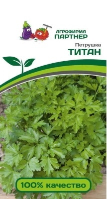 Петрушка листовая ТИТАН 2г Агрофирма Партнер. Среднеспелый сорт листовой петрушки. Период от полных всходов до начала технической спелости – 80-90 дней. Розетка листьев полувертикальная, мощная, лист темно-зеленый, мелко изрезанный, среднекурчавый. Масса одного растения 100 г. Вкусовые качества и ароматичность хорошие. Сорт пригоден для свежего потребления, всех видов переработки, сушки и заморозки. Благодаря быстрому отрастанию после срезки, способен давать 2-3 урожая за сезон. Сорт ценится за длительное сохранение товарных качеств зелени при хранении и транспортировке, устойчивость к неблагоприятным погодным условиям. За счет высокого содержания сухих веществ, Титан является самым популярным сортом в мире для сушки зелени. Великолепно сохраняет окраску после переработки. Посев производят в течение всего сезона, начиная с апреля. Урожайность – более 3,0 кг/м2.
