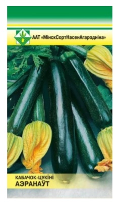Кабачки Аэронавт 2г МинскСортСемОвощ. Растение кустовое, компактное, плетей мало. Плоды цилиндрические, гладкие, темно-зеленые. Кора тонкая. Мякоть беловато-желтая, толстая, плотная. Дегустационная оценка 4,5-5,0 баллов. Транспортабельность хорошая. Один из лучших сортов по лежкости. Вкусовые качества высокие.