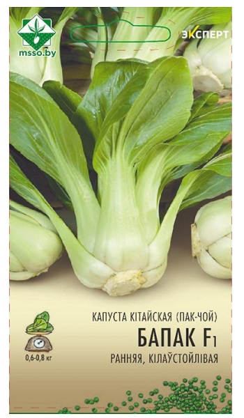 Капуста китайская Бопак F1 12шт (Эксперт) МинскСортСемОвощ. Ранний килоустойчивый гибрид голландской селекции. Период от всходов до уборки 55-60 дней. Формирует розетку с широкими темно-зелеными листьями на толстых мясистых черешках. Отличается мягкими пикантными вкусовыми качествами и очень приятным послевкусием. Для приготовления салатов, тушения, маринования. Выращивают через 15-20-дневную рассаду или прямым посевом семян в грунт с интервалом в 20 дней.
