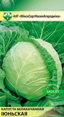 Капуста Июньская б/к 0,5г МинскСортСемОвощ. Кочаны округлые, светло-зеленые,среднеплотные, относительно устойчивы к растрескиванию. Отличается дружным созреванием урожая, холодостойкий. Вкусовые качества высокие. Для потребления в свежем виде летом.