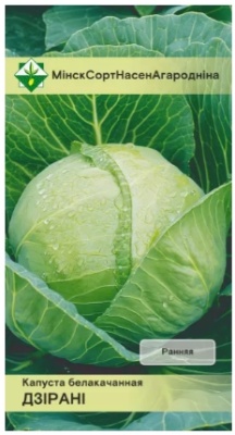 Капуста б/к Дирани 0.5г МинскСортСемОвощ. Кочаны округлые, светло-зеленые, средней плотности, относительно устойчивы к растрескиванию, что позволяет убирать их в течение достаточно длительного периода. Вкусовые и товарные качества высокие. Предназначается для потребления в свежем виде и квашения в небольших емкостях в летний период.
