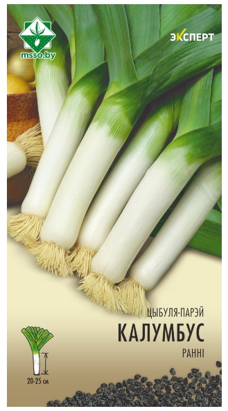 Лук-порей Колумбус 50шт (Эксперт) МинскСортСемОвощ. Ранний высокоурожайный сорт голландской селекции. Листья зеленой окраски. Отбеленная часть («ножка») цилиндрическая, длиной 20-25 см, диаметром 3,5-4,5 см. Вкус полуострый. Дегустационная оценка 5 баллов. Лучше выращивать рассадным способом. Для получения мощного отбеленного стебля за вегетацию необходимы 2-3 окучивания. После уборки хорошо хранится при засыпании песком в вертикальном положении.