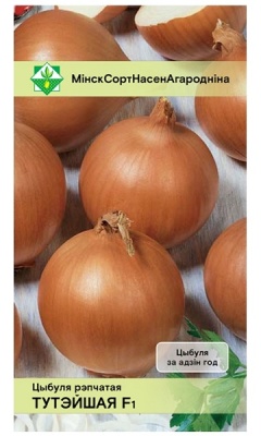 Лук Тутэйшы F1* 0.5г МинскСортСемОвощ. Среднеранний урожайный гибрид белорусской селекции. Период от всходов до уборки 100-105 дней. Луковицы одногнездные, плотные, округло-плоской формы, золотисто-желтого цвета, массой 120-130 граммов. Внутренние сочные чешуи белые. Вкус острый. Универсального назначения. Лежкость хорошая. Устойчив к стрелкованию и болезням. Рекомендован для выращивания лука репчатого в однолетней культуре из семян.