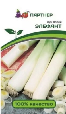 Лук порей Элефант 0,5г Агрофирма Партнер. Сорт среднеспелый. От всходов до технической спелости 150-160 дней. Листья зеленые. Длина отбеленной части около 15 см, диаметром 3-4 см. Масса одного растения 150-250 г. Вкус приятный, полуострый. Рекомендуем выращивать через рассаду. Сорт холодостойкий. Рекомендуется для использования в свежем виде, замораживания и в качестве начинки для пирожков. Плотность посадки 15-20 растений/м2. Урожайность 2-4 кг/м2.