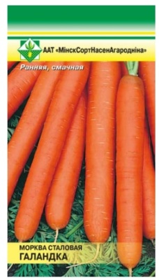 Морковь Голландка столовая 1г МинскСортСемОвощ Ранний урожайный сорт германской селекции. Корнеплоды цилиндрической формы, выравненные по размеру, гладкие, длиной 15-17 см, оранжевые. Мякоть нежная, сочная. Сердцевина небольшая, оранжевой окраски. Вкусовые качества высокие. Используется в свежем виде, для переработки, при более поздних сроках посева пригодна для хранения.