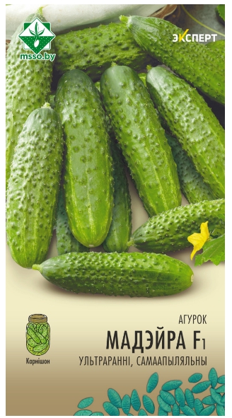 Огурец Мадейра F1 5шт (Эксперт) МинскСортСемОвощ. Ультраранний гибрид корнишонного типа голландской селекции. Период от всходов до плодоношения 42-46 дней. Партенокарпический (самоопыляемый), высокоурожайный, в каждом узле формирует по 2-4 плода. Плоды ярко-зеленые, цилиндрической формы, однородные, хрустящие, отличного вкуса, горечь отсутствует. Универсального назначения. Для открытого и защищенного грунта. Отличный выбор для получения раннего урожая.