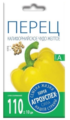 Перец Калифорнийское чудо желтое 0,1г Агроуспех - это классический сорт с желтыми плодами. Плоды кубовидные с ребристой поверхностью, длиной 10-11 см, диаметром 10-11 см, толщина стенок 5-7 мм. Плоды в технической спелости зеленые, в биологической - желто-оранжевые. Масса плода 80-130 г, товарные и вкусовые качества высокие. Сорт пригоден для выращивания в открытом и защищенном грунте. Отличается высокой устойчивостью к болезням.