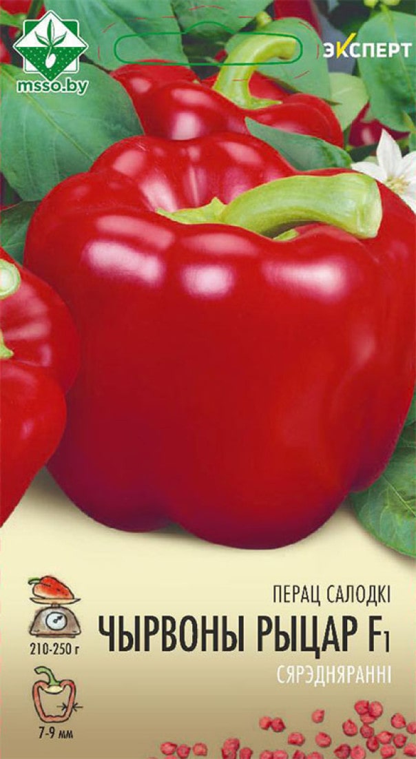 Перец Красный рыцарь F1 6шт (Эксперт) МинскСортСемОвощ. Среднеранний урожайный гибрид голландской селекции. Высота растения 70-90 см. Плоды кубовидной формы, очень крупные, массой 210-250 граммов, в технической спелости темно-зеленые, в биологической - ярко-красные. Толщина мякоти 7-9 мм. Товарные и технологические качества отличные. Дегустационная оценка свежих плодов 5 баллов. Для выращивания в необогреваемых теплицах рассадным способом.