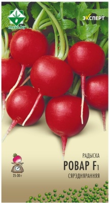 Редис Ровер F1 1г (Эксперт) МинскСортСемОвощ. Среднеранний высокоурожайный гибрид голландской селекции. Период от всходов до начала уборки 25-30 дней. Корнеплоды округло-плоской формы, ярко-красного цвета, отличного товарного вида, массой 25-30 г. Мякоть белая, нежная, сочная, без горечи. Вкус превосходный. Не теряет вкусовых и товарных качеств при перерастании. Устойчив к растрескиванию и цветушности. Рекомендуется для выращивания с весны до осени в открытом и защищенном грунте.
