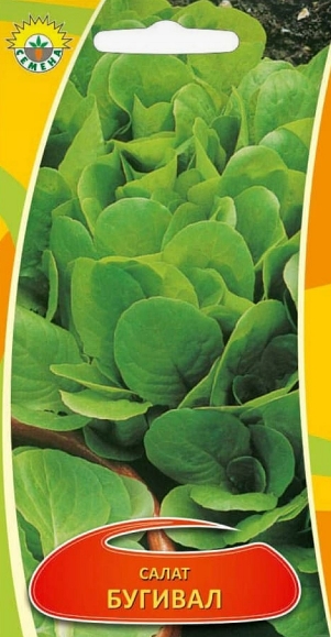 Салат "Бугивал" – раннеспелый сорт листового салата. Розетка листьев прямостоячая, диаметром до 20 см. Лист крупный, светло-зеленый, сочный и нежный на вкус. Масса растения 200-250 г. Сорт устойчив к цветушности и отличается быстрым ростом при любой длине дня. Рекомендуется для выращивания в различных климатических зонах, в открытом грунте и зимних теплицах.