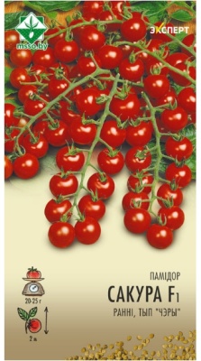 Томат Сакура F1 5шт (Эксперт) МинскСортСемОвощ. Ранний гибрид голландской селекции с превосходными вкусовыми качествами и привлекательным товарным видом. Растение индетерминантное, высотой около 2 метров. Плоды округлой формы, темно-красные, плотные, массой 20-25 граммов. Формирует от 15 до 20 плодов в кисти. Подходит как для сбора кистями, так и отдельными плодами. Для потребления в свежем виде и цельноплодного консервирования. Рекомендован для выращивания в защищенном грунте.