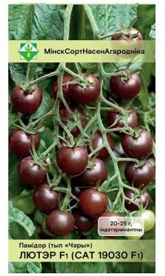 Томат Лютер F1 7шт (САТ 19030) МинскСортСемОвощ. Ранний урожайный гибрид с плодами уникального шоколадно-коричневого цвета. Растение индетерминантное, высотой 160-180 см. Плоды округлые, однородные по форме и размеру, массой 20-25 г, сладкие, отличных вкусовых и товарных качеств. Урожай собирают поштучно и кистями (в среднем по 12 плодов в каждой кисти). Рекомендован для выращивания в необогреваемых теплицах.