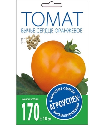 Томат Бычье сердце оранжевое средний, 0.05г Агроуспех. Мясистый и очень сладкий! Сорт среднеспелый, период от полных всходов до начала плодоношения 125-132 дня. Растение индетерминантное, высота главного стебля 1-1.6 м. Плоды очень крупные, массой до 300-400г, сердцевидной формы, ярко-оранжевой окраски, мясистые, очень вкусные. Сорт салатного назначения. Ценность сорта: высокая урожайность, прекрасные вкусовые качества плодов. Идеален для людей, склонных к аллергии на красные сорта томатов.