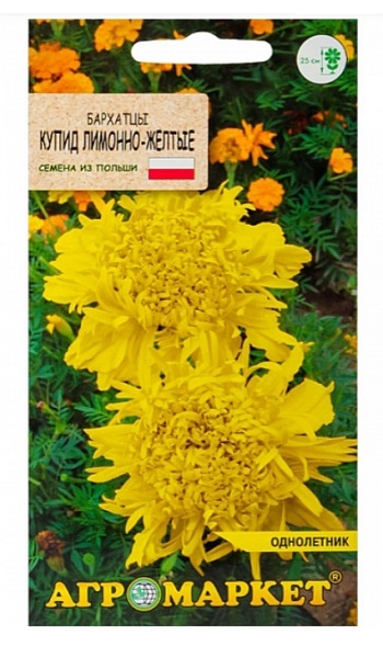 Бархатцы прямостоячие лимонно-желтые Купидон 0.5г Агромаркет