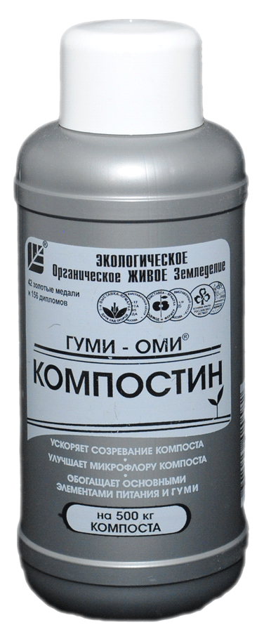 Препарат Компостин Гуми-Оми 500мл специальный биопрепарат, ускоряющий созревание компоста в 4 раза! В его составе очищенный куриный помет, гуминовые кислоты, бактерии Фитоспорина и элементы питания: азот, фосфор, калий. Препарат выпускается в виде водорастворимого концентрата, который можно применять как для сухих, так и для жидких органических остатков.