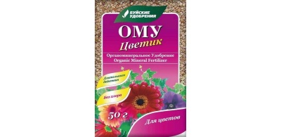 Органоминеральное удобрение ОМУ Цветик 50гр - комплексное гранулированное удобрение пролонгированного действия, производится на основе низинного торфа, в состав которого входят гуминовые вещества, макро- и микроэлементы. ОМУ работает ранней весной, когда растениям необходима стимуляция роста, летом - в период активной вегетации и осенью, укрепляя растения на зиму благодаря его пролонгированному действию. Гранулы темно-серого цвета, диаметр: 1- 2.8 мм. Не содержит хлор.