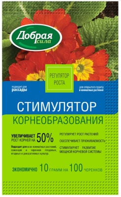 Стимулятор корнеобразования Добрая сила 10гр предназначен для стимулирования корнеобразования всех комнатных растений и черенков плодовых, ягодных и декоративных культур. Препарат совместим с любыми пестицидами и не фитотоксичен. Скорость воздействия колеблется от 20 до 60 дней в зависимости от условий укоренения.