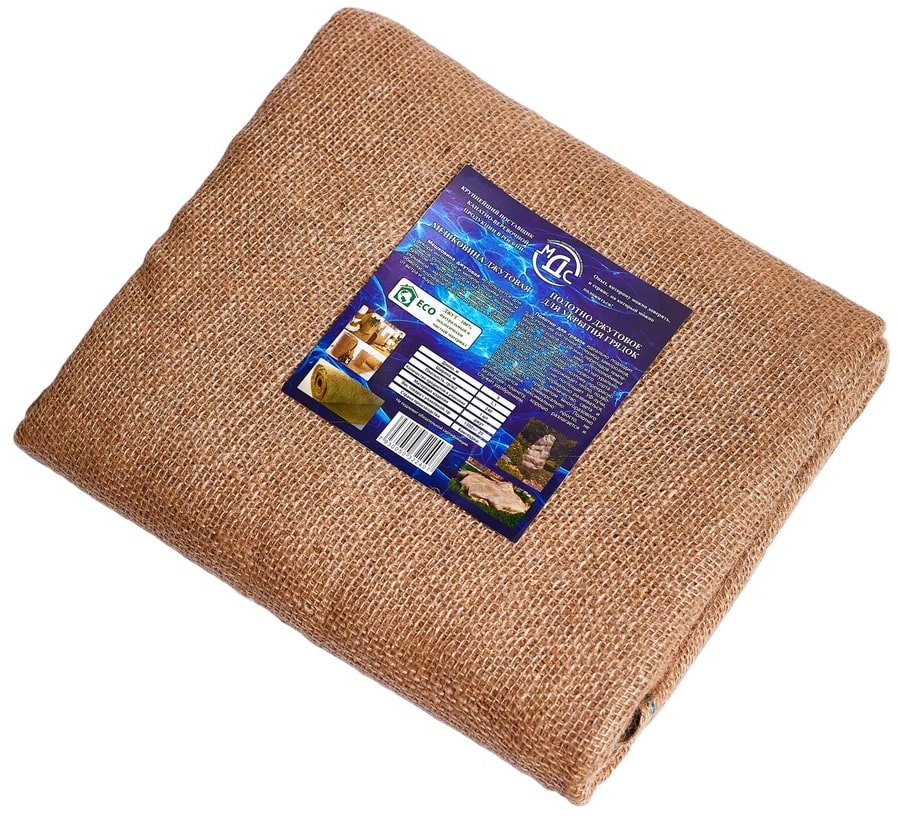 Полотно джутовое мешковина 1,1x1,5 м МДС используется для декора интерьера и мебели, пошива сумок и мешков, рулонных штор и скатертей, вышивки крестом и лентами, как упаковочная ткань, укрывной материал для посадки газона, обмотки корневой системы деревьев. Защита от ветра и жары.