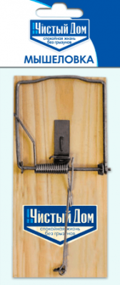 Мышеловка Чистый Дом - это специальное устройство для поимки различных видов грызунов, приманкой в которой служат пищевые продукты. Изготавливают мышеловки на деревянной основе. Устройство имеет металлический пружинный рычаг. Прикоснувшись к приманке, грызун приводит его в действие. Капкан захлопывается мгновенно и не дает животному возможности уйти.